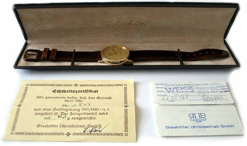 Kaliber 01-89perfekt erhaltenes Original-Zifferblatt, fast ungetragenes 14 karat (585er) Gold-Gehäuse, Werk in perfektem Zustand, vergoldeter streifengeschliffener Rotor Zustand: 1