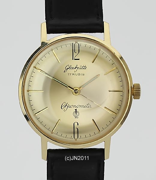perfekt erhaltenes Original-Zifferblatt, ungetragenes vergoldetes Gehäuse, Werk in perfektem Zustand Zustand: 1+ Boden mit Chronometerprägung